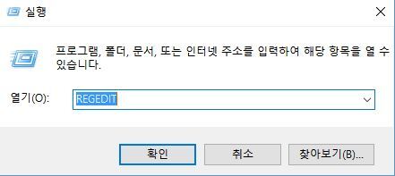 위 화면 처럼 "실행창" 에서 > "Regedit" 을 기입하여 레지스트리를 편집할 수 있습니다. 해당 명령어를 기입하면