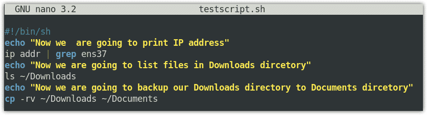 This is how our script file in Nano editor looks like: