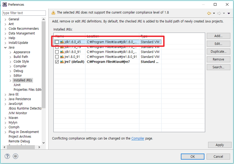 jdk1.6.0이 추가된거 보이시나요?