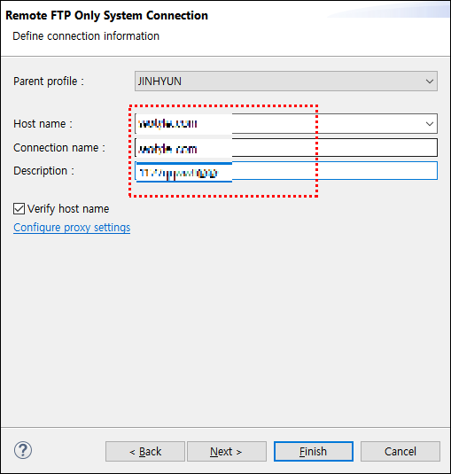 그러면 이제 FTP 접속 정보를 넣는곳이 나와 있습니다.