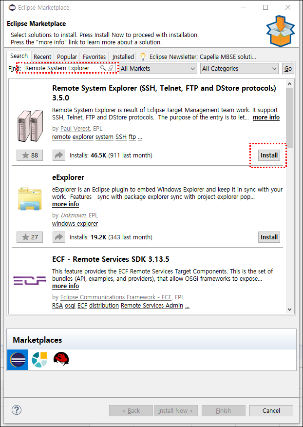 ▼그리고 find에 Remote System Explorer 를 검색해봅시다. 그리고 install