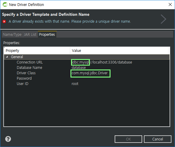 마지막을 자신의 환경에 맞게 잘 설정해 주어야지 제대로된 커넥션을 생성할 수 있습니다.