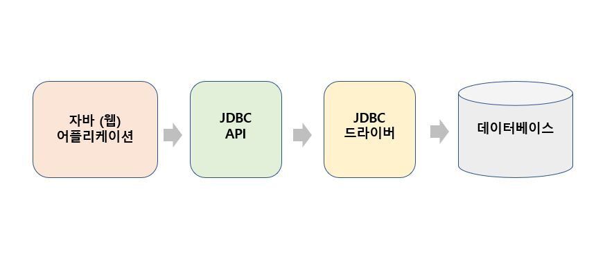 - 자바 애플리케이션에서 데이터베이스에 접근하기 위해서는 JDBC API를 이용해서 데이터베이스에 접근하고, JDBC API는 JDBC 드라이버를 거쳐 데이터베이스와 통신을 한다.