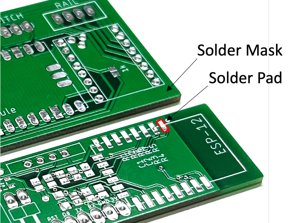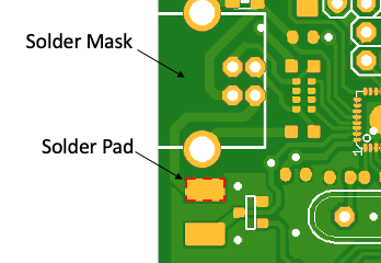 앞서 언급했듯이 "솔더마스크"는 PCB의 가장 바깥쪽에 바르는 코팅을 의미합니다. 패턴 중 납땜을 해야 하는 부위가 있다면 그 부위를 제외하고 솔더마스크를 바르는데요, 그렇게 생기는 부분을 "솔더패드"라 부릅니다.