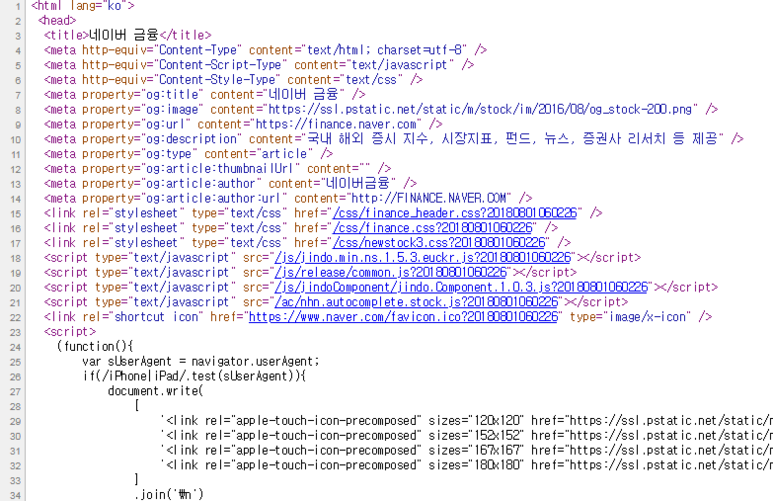 네이버 금융 웹 사이트 소스코드