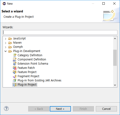 (2) Plug-in Project 를 선택하고 Next 버튼을 클릭한다.