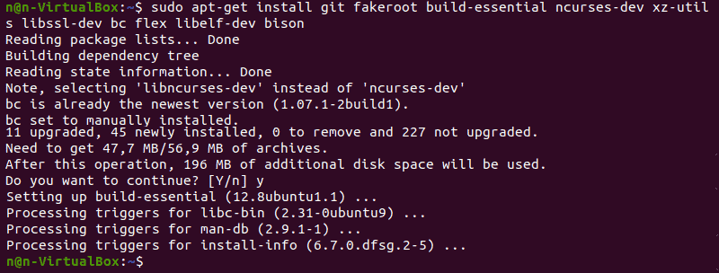 sudo apt-get install git fakeroot build-essential ncurses-dev xz-utils libssl-dev bc flex libelf-dev bison