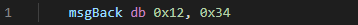 레이블을 msgBack이라 지정하고, 바이트 단위로 0x12, 0x34를 저장하려면, 다음과 같이 작성하면 됩니다.