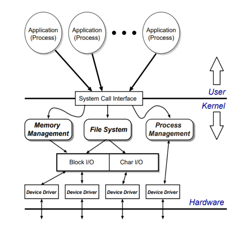 사진에 나와 있는 내용을 전부 다루지는 않습니다. 책에서 주로 다루는 내용은 프로세스 관리( Process Management )와 메모리 관리( Memory Management )입니다. 두 부분을 좀 더 중점적으로 공부할 수 있을 것으로 예상합니다.