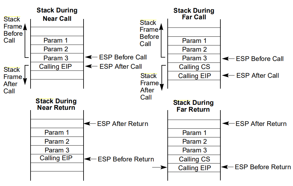 call, ret 명령어 실행 시, 스택 변화