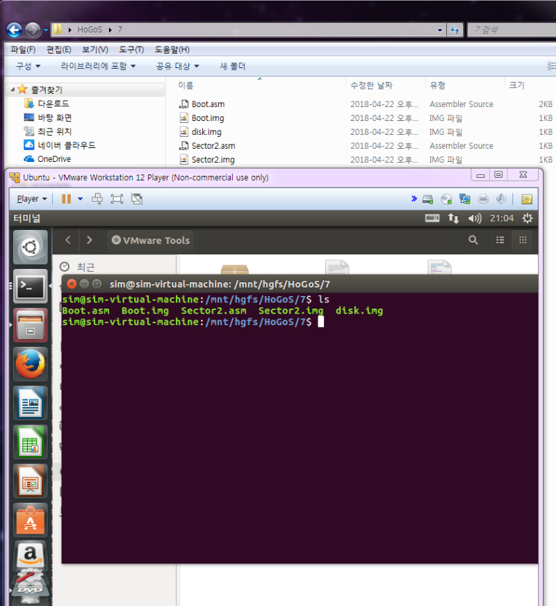 우리의 목표는 C언어로 개발을 하되, 소스코드를 기계어로 만들어 통합하는 것입니다. C언어에서 기계어를 추출하는 방법은 여러 가지입니다. 저는 Linux 계열에서 제공하는 gcc 컴파일러를 사용할 예정입니다. 그런데 개발을 Windows 상에서 하고 있었으니... Linux를 vmware에 설치해야겠죠?