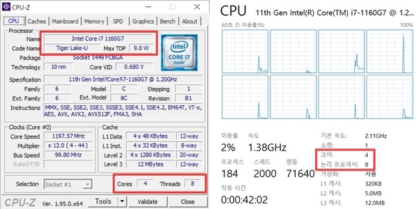 CPU는 인텔의 최신 ‘타이거레이크’ 기반 11세대 코어 i7 프로세서(i7-1160G7)를 탑재했다. 최대 4.4㎓까지 올라가는 작동속도와 4코어 8스레드의 코어 구성, 12MB의 대용량 캐시 메모리 등으로 이동성을 강조한 비즈니스 노트북 기준 최상급의 업무 처리 성능을 제공한다.