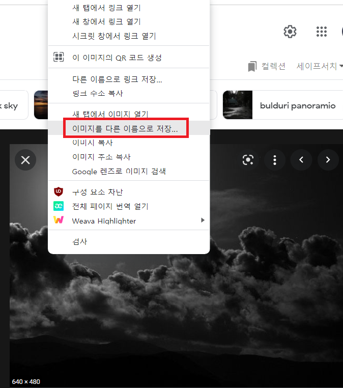 '이미지를 다른 이름으로 저장'을 클릭해서 이미지를 저장해준다.