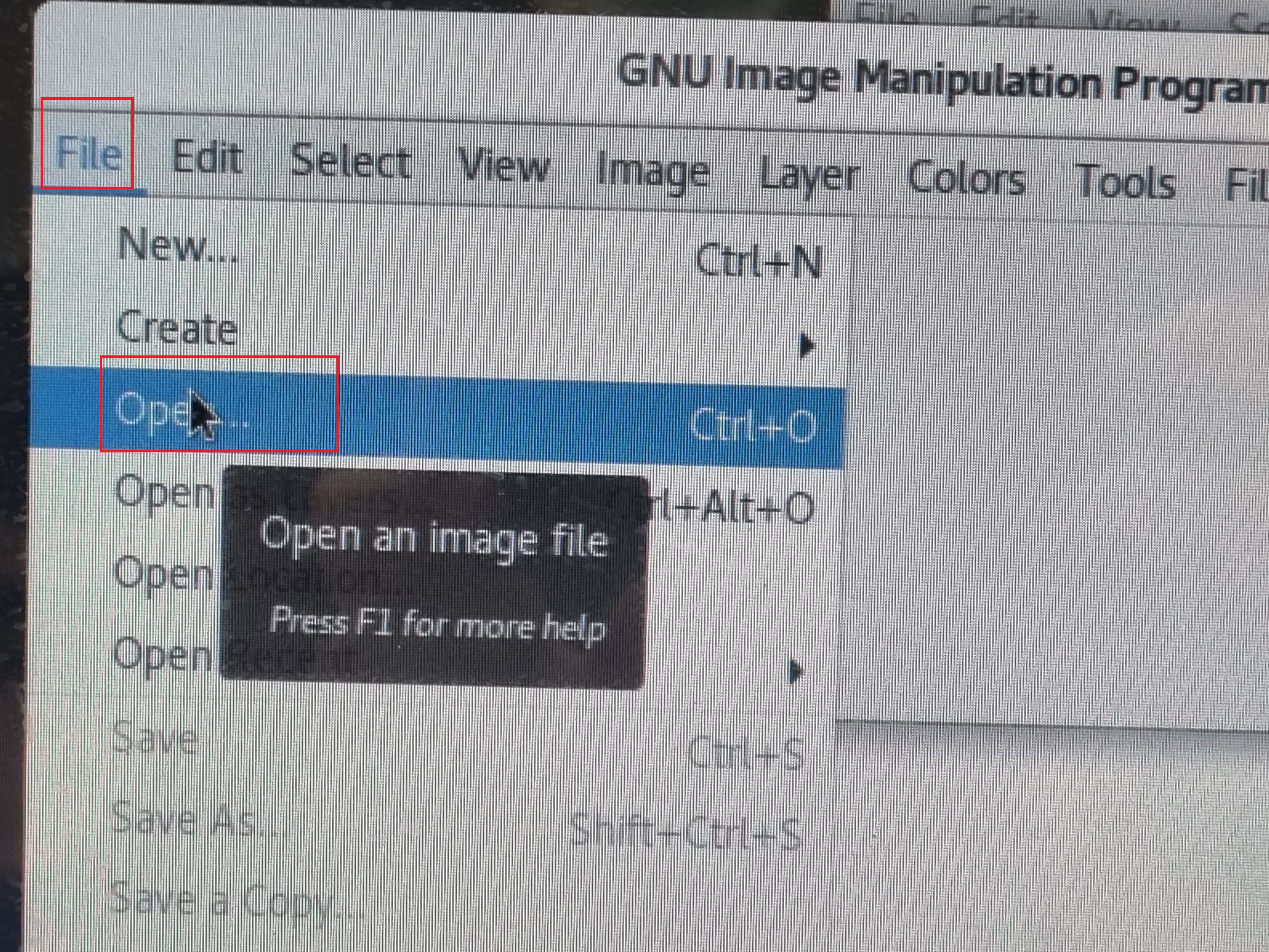 오른쪽 하단에 있는 'Open'을 클릭해서 다운받았던 이미지를 gimp로 불러와 준다.