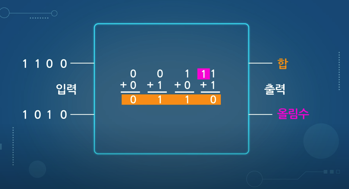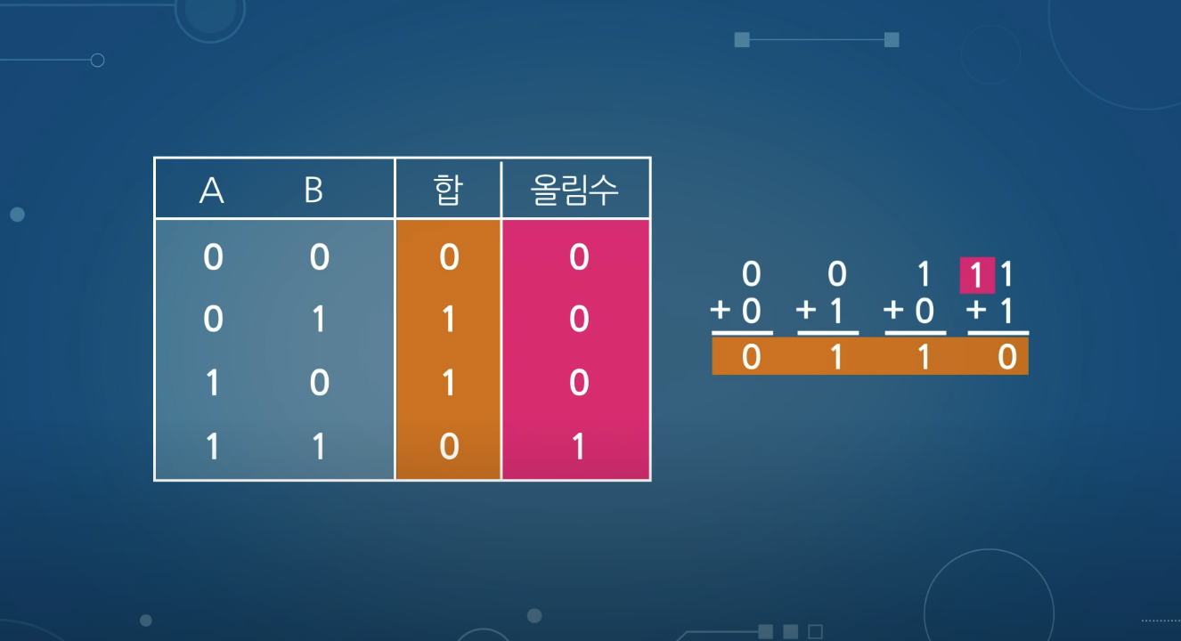 실제 덧셈에 사용되는 논리회로는 더 복잡하지만