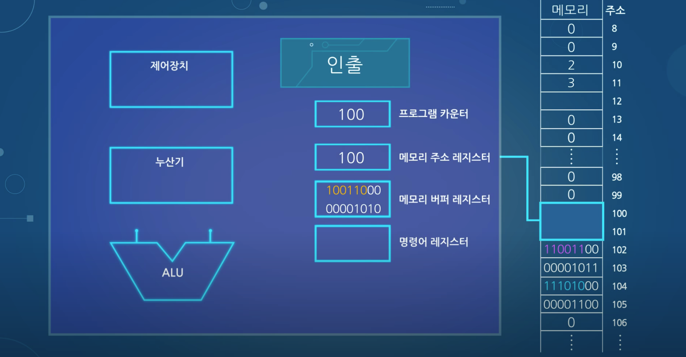 메모리 버퍼 레지스터는 100번째 주소의 값을 읽어와 저장