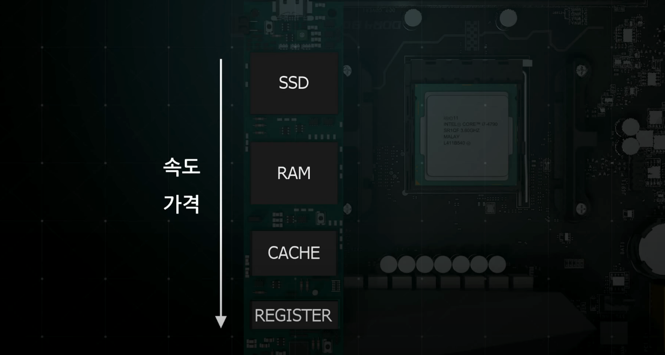 컴퓨터의 기억장치는 하드, 램, 캐시, 레지스터