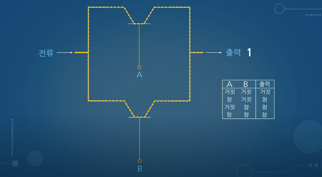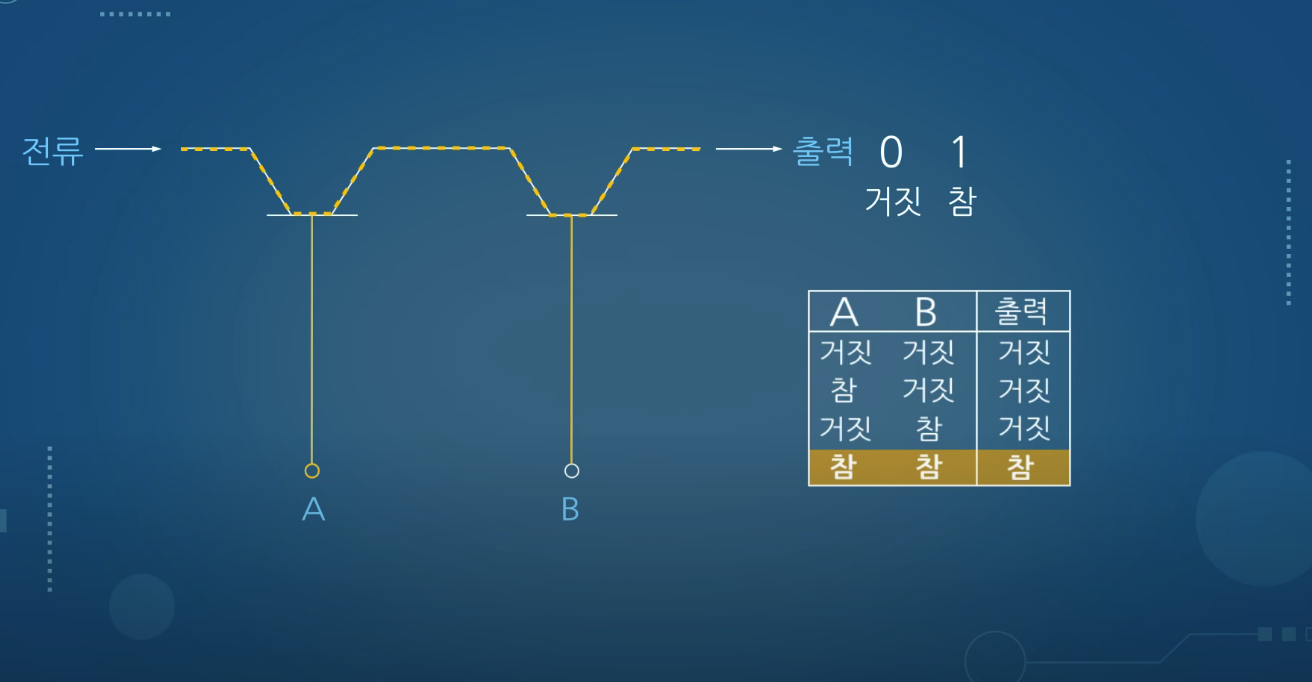 각 Base 부분인 A, B에 전류의 여부에 따라