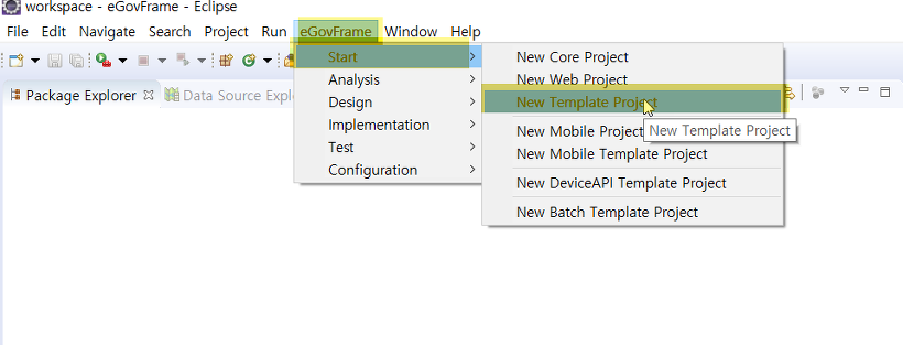 우측 eGovFrame Perspective bar에서 마우스 오른쪽 버튼을 눌러서