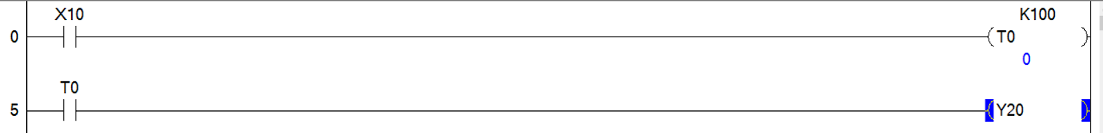 - OFF DELAY TIMER와 차이점은 [T0 K100] 앞에 별도의 B접점 입력신호가 없습니다.