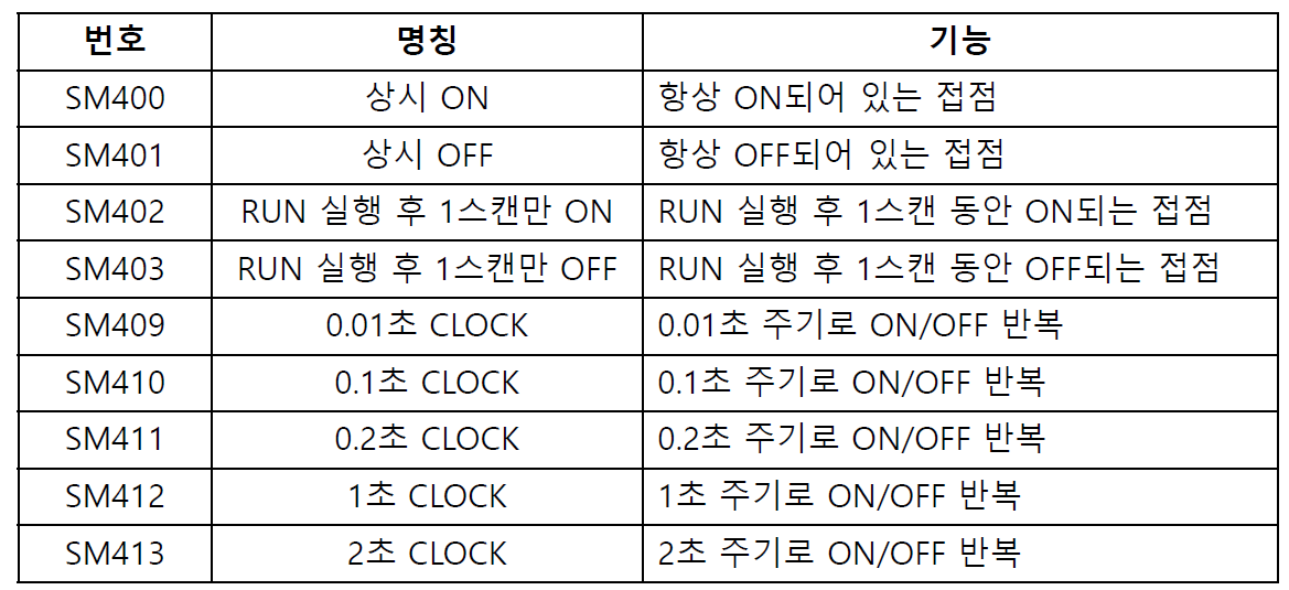 - SM402, SM403 : 복잡한 응용 명령어를 다룰때 사용합니다.