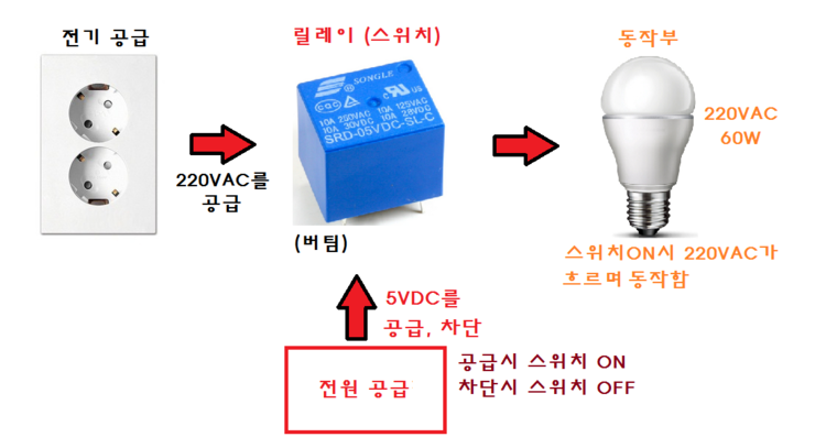 릴레이는 쉽게 말해 ON, OFF가 있는 일종의 '스위치' 입니다.