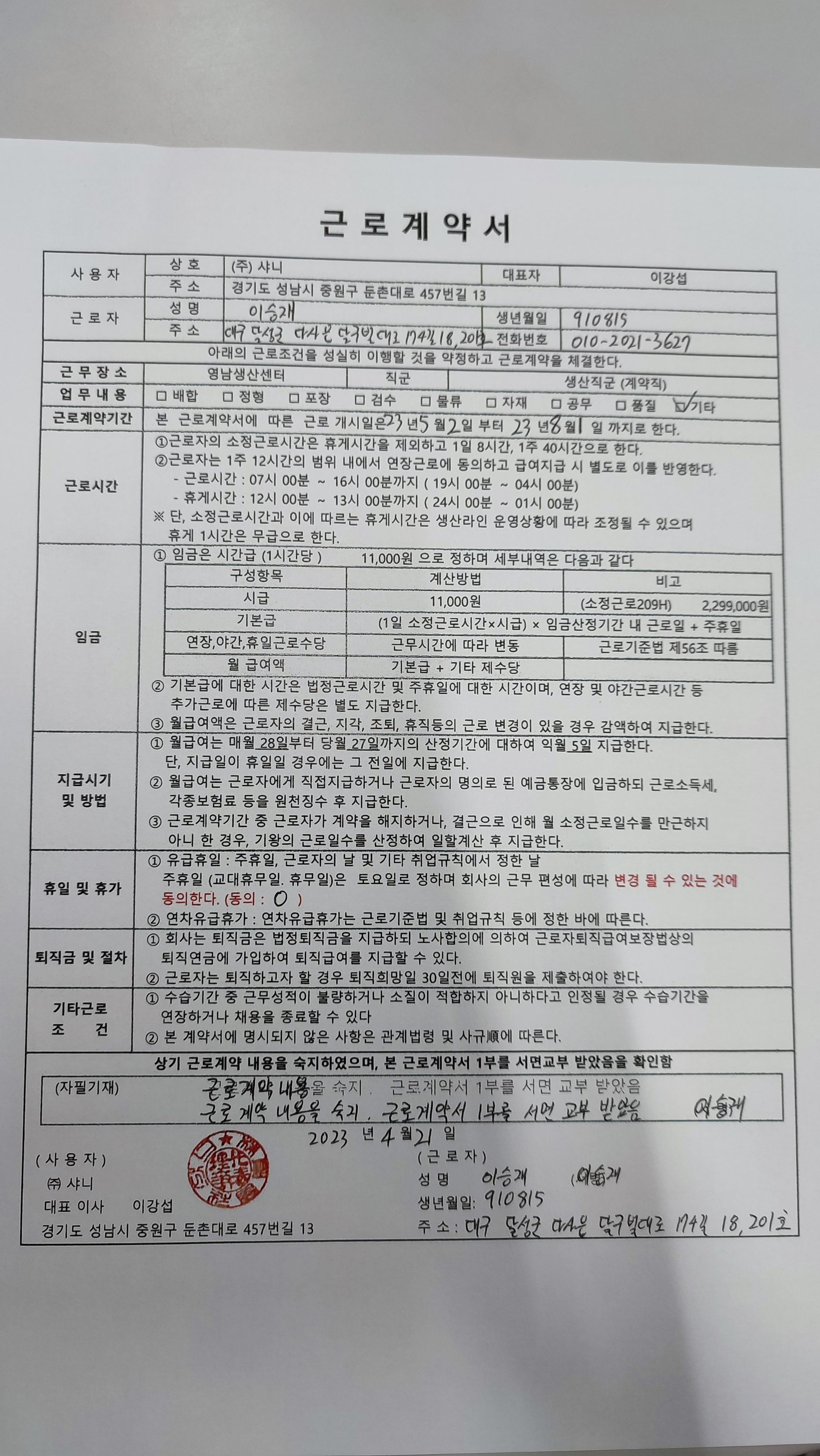 전 IT 회사 근로 계약서에서 마음이 상했고...