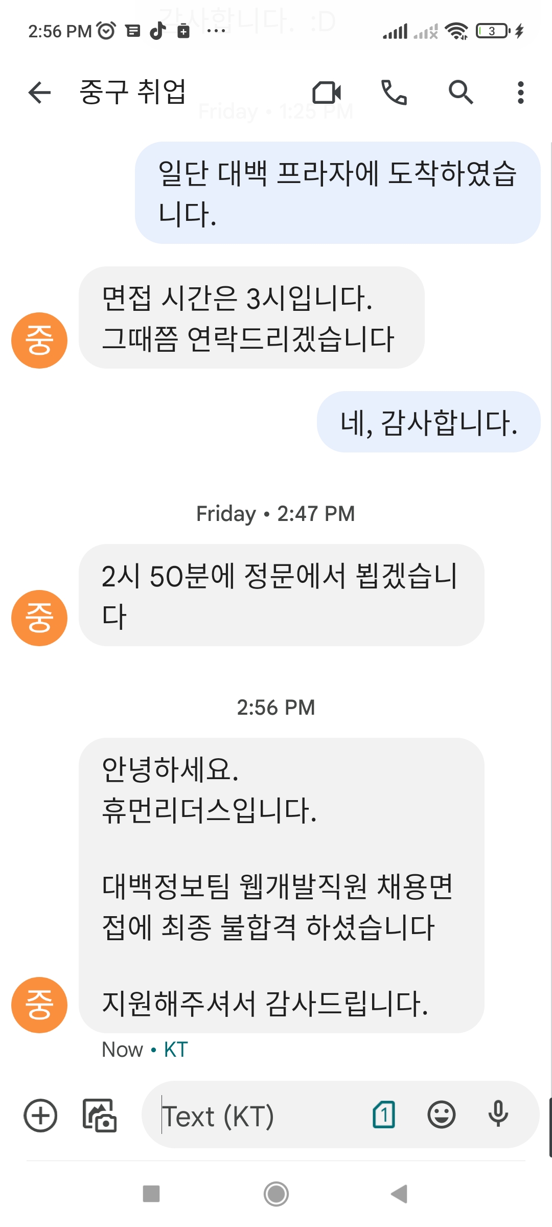 아니.... 어쩌면 불합격 통보 문자 준 것만 해도 배려 하는 거지만.....