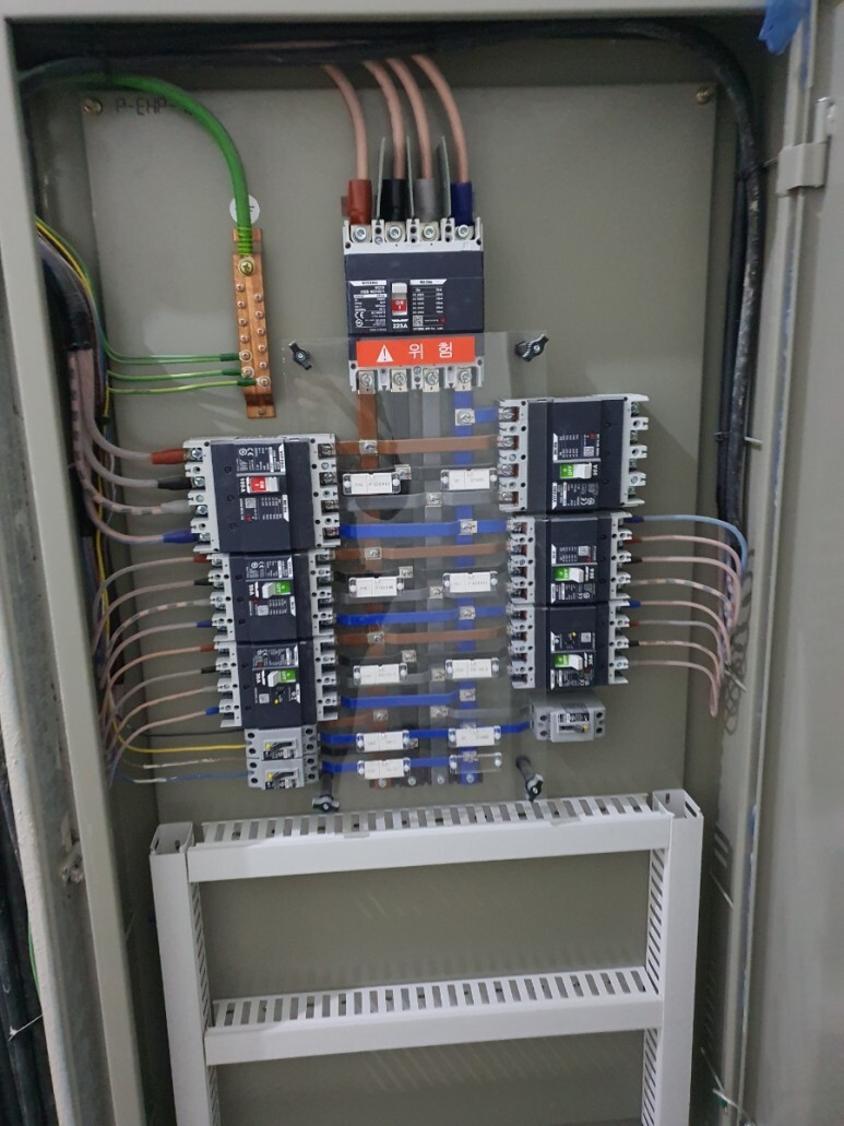 골조가 완성 되었고 트레이 내 주전원공급용 케이블이 넣어져 있다. 여기에 여러차단기가 내장되어 있는 판넬이 설치 되어 있다.