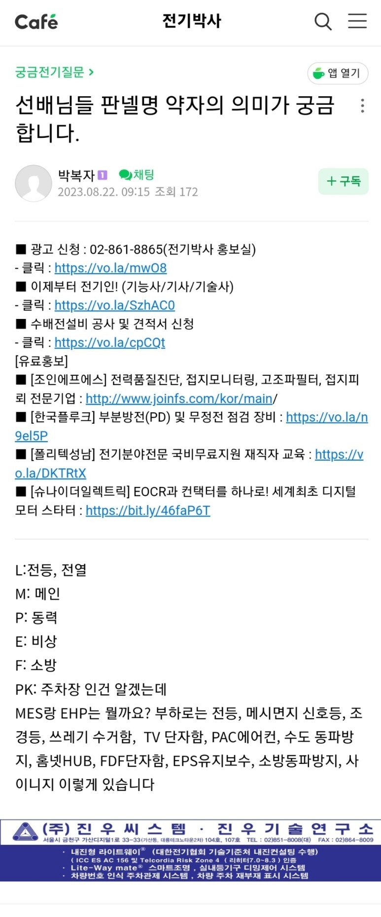 E는 일렉트로닉 전기를 칭할 것 같다.