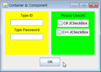 - 컨테이너는 컴포넌트로 부터 상속 받은 하나의 윈도우 영역을 의미