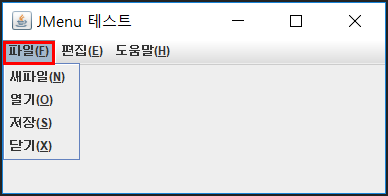 JMenu fileMenu = new JMenu("파일(F)");
