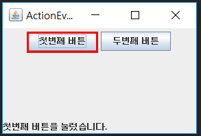 - ActionListener 인터페이스의 actionPerformed(ActionEvent) 메서드를 이용해서 처리
