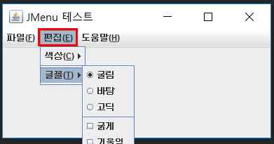 JMenu fontMenu = new JMenu("글꼴(T)");