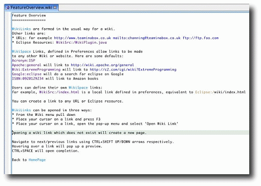 This Eclipse plugin is a simple personal or project Wiki. A Wiki is many things,
