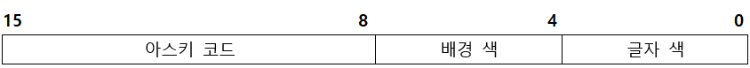 컬러 텍스트 모드 비디오 메모리 영역에서는 화면에 글자를 표현하는데 2바이트를 사용합니다.