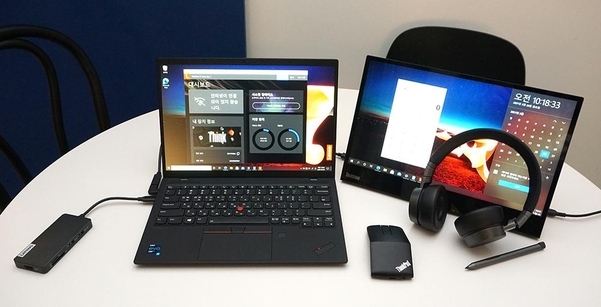 ‘씽크비전 M14t’ 보조 모니터는 씽크패드 노트북과 함께 휴대 가능한 보조 모니터다. 얇고 가벼워 씽크패드 X1 나노와 함께 쉽게 휴대할 수 있으면서, 14인치의 넉넉한 화면을 추가로 쓸 수 있어 13인치 단일화면의 아쉬움을 덜 수 있다. 10점 터치 조작도 가능하고, 전용 스타일러스 펜을 이용한 필기와 드로잉도 가능해 업무 생산성을 대폭 끌어올릴 수 있다.