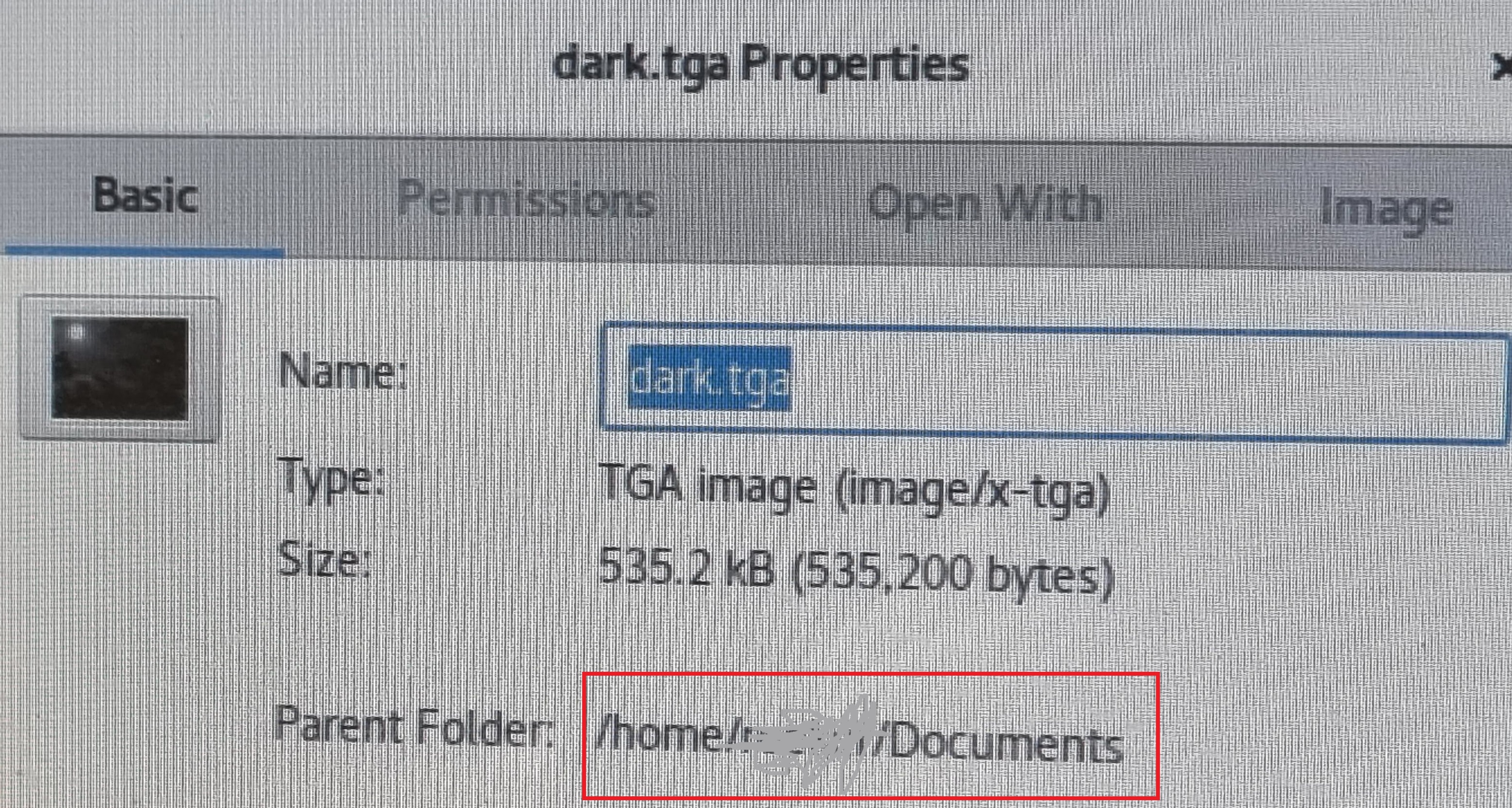 Parent Folder: 옆에 /home/nana/Documents 가 있다.