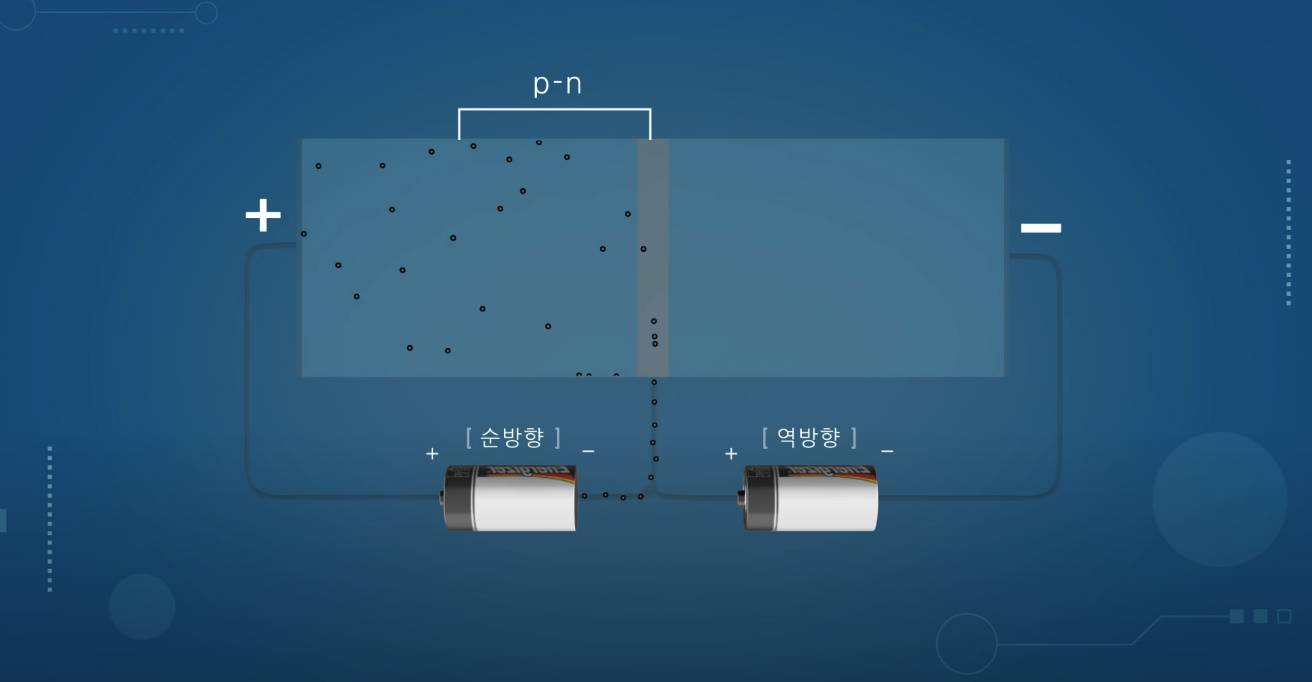 전류가 흐르지 못하게 하려면 반대 전하로 전압을 연결하면됨! = 역방향 연결