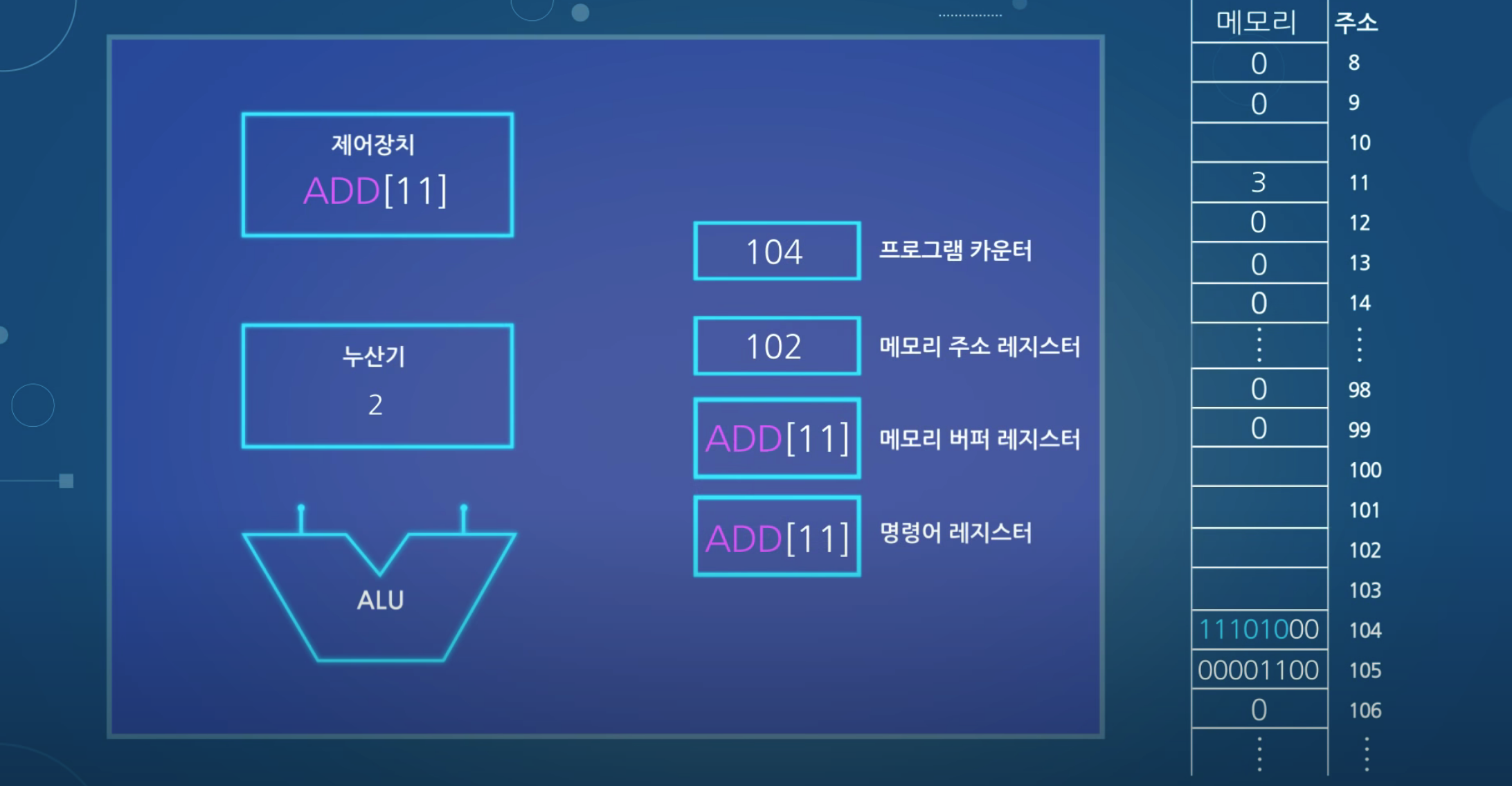 메모리 주소 레지스터가 104를 저장하고