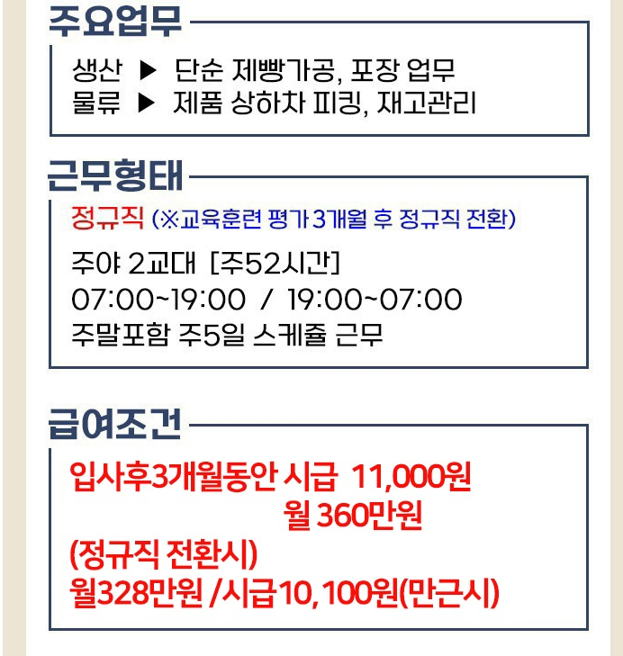 시급 만 천원에 12시간이 아닌 14시간 근무이나... 실질적으로 받는건 10시간 정도로 쳐서 일당 십만원 수준이다.