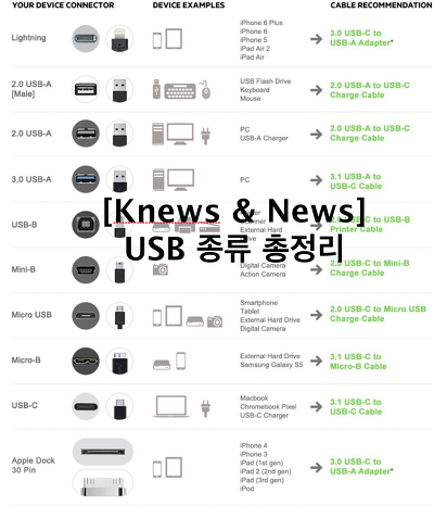 잘 보셨나요? 수많은 USB의 종류가 있기 때문에 소비자가 알아서 구분하고, 관련 케이블과 어댑터를 챙겨놓아야 한다는 것! 잊지말고, 잘 보관하여 갑작스런 불편함이 없도록 합시다. 여행을 떠날 때! 출장을 갈 때! "얘와 얘가 궁합이 맞던가?"를 꼭 한 번 더 확인하기 바랍니다.