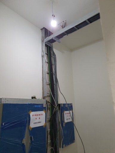 골조가 완성 되었고 트레이 내 주전원공급용 케이블이 넣어져 있다. 여기에 여러차단기가 내장되어 있는 판넬이 설치 되어 있다.