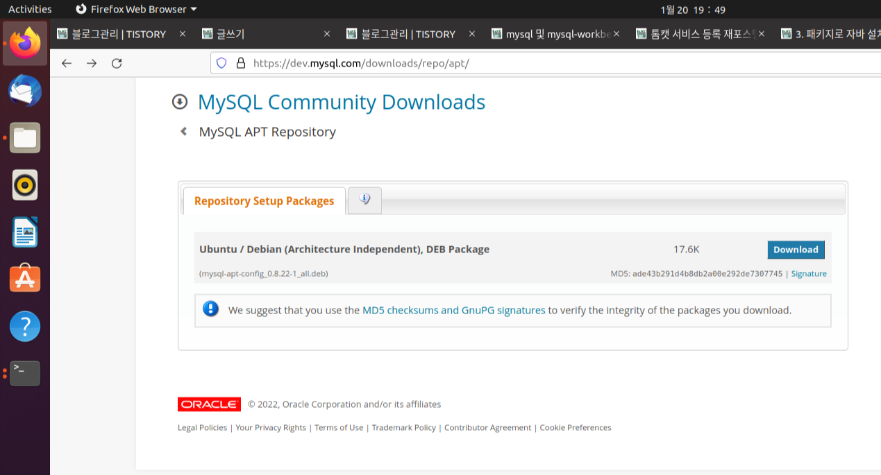 apt repository에 가서 (mysql-apt-config_0.8.22-1_all.deb)를 다운로드