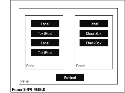 - 다른 컴포넌트를 포함할 수 있는 GUI 컴포넌트