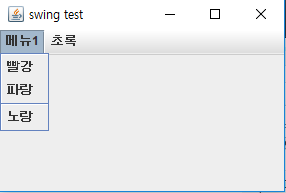 - 메뉴는 JAbstractButton 클래스를 상속하고 있으므로 일종의 버튼이라 보면 된다. 따라서 누르면 이벤트가 발생한다.