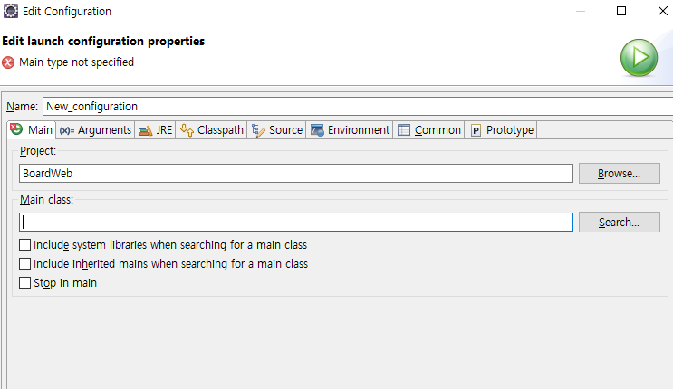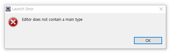 저렇게 Editor does not contain a main type가 뜨면서 출력이 되지 않는다