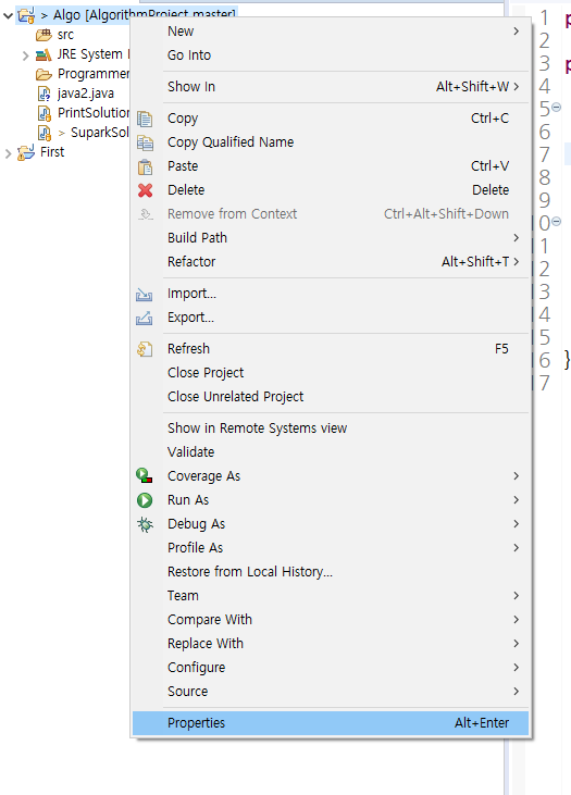 먼저 프로젝트 우클릭 후 Properties를 눌러주자