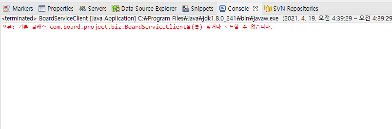이클립스로 게시판을 만드는데 기본 클래스를 찾거나 로드할 수 없다는 오류가 발생했다.