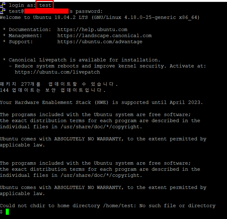 sudo passwd test// 위에서 생성한 그룹에 test 계정 추가
